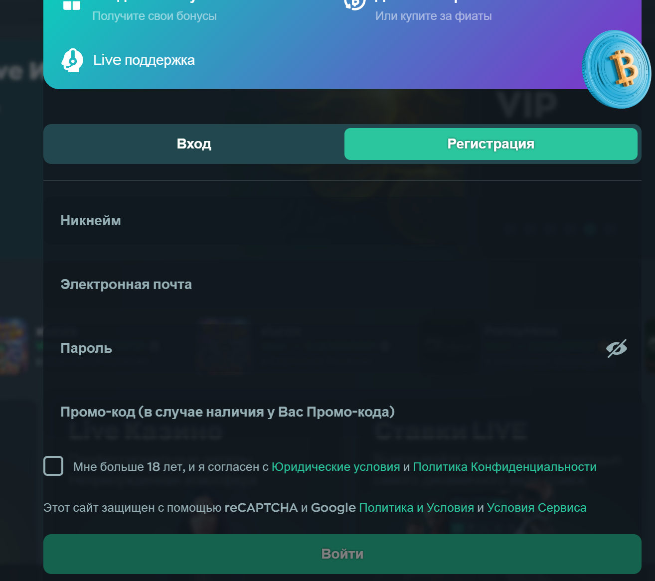 Чтобы получить максимальный приветсвенный бонус, указывайте в процессе регистрации специальный промокод. Для него в анкете отводится нужное поле.